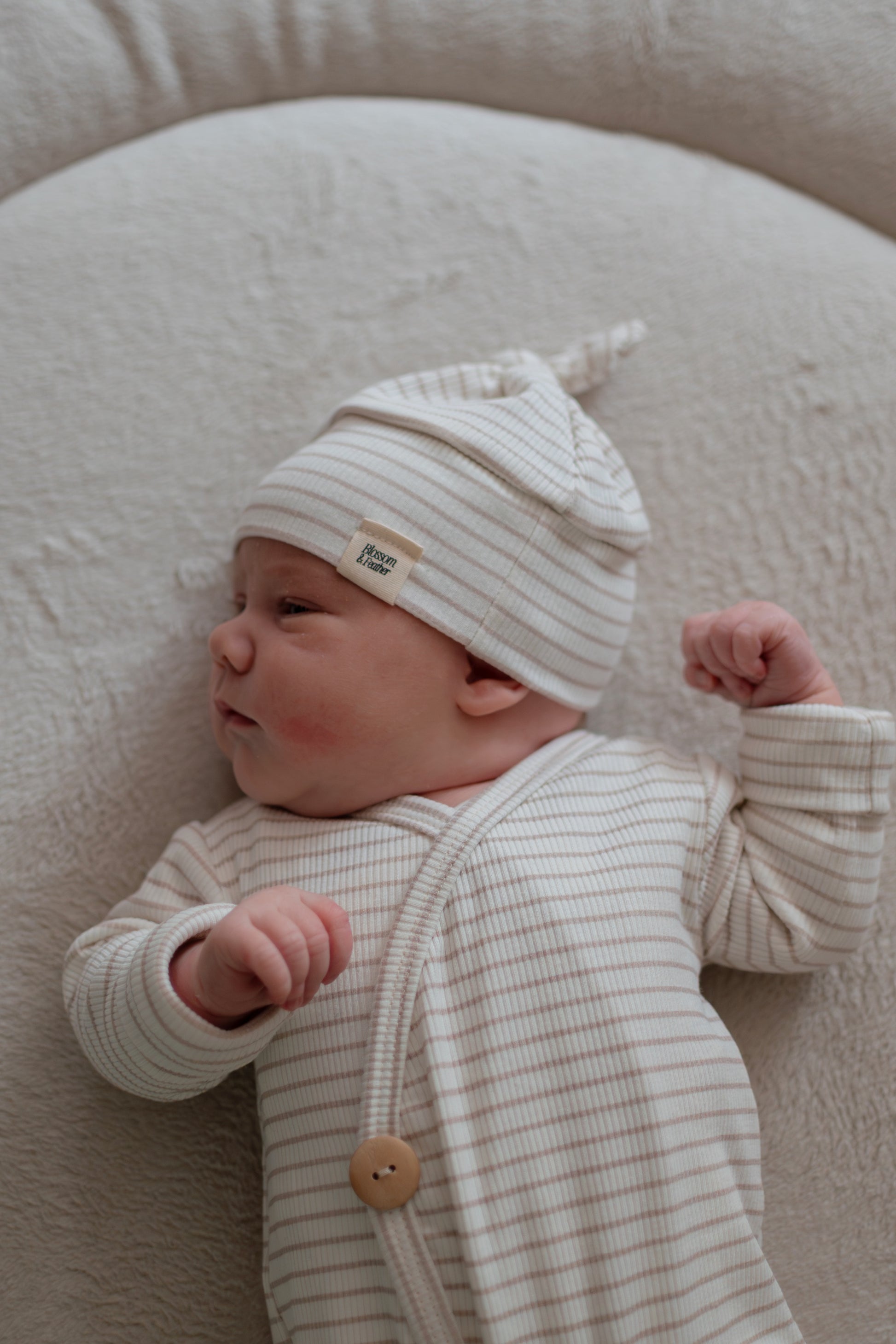Knoopmutsje rib | Streepjes | Licht beige